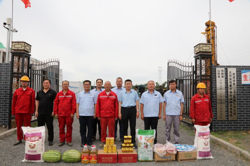 7月19日,公司党委副书记、副董事长、总经理郭红党一行深入必威官网、大同盆地重点地区深部高温地热资源详查项目一线,送去重点慰问。走入作业现场,倾听职工呼声、关注职工诉求,协调解决高温、露天、艰苦、一线职工现实困难,为受高温、疫情双重考验的职工送去了清凉和健康。随后,以“送清凉”活动为契机,召开了现场座谈会,传达学习了习近平总书记考察调研山西重要指示、关于工人阶级和工会工作的重要论述精神。
