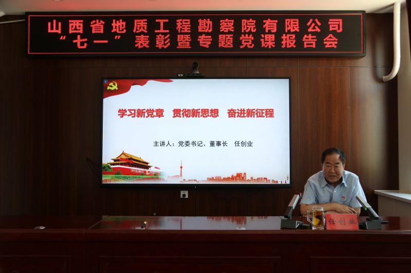 6月30日,党委书记、董事长任创业以《学习新党章 贯彻新思想 奋进新征程》为题讲了专题党课,结合主题教育安排部署,围绕党章的建设历程、二十大党章修改的主要内容、准确把握学习贯彻新党章的实践要求三个方面,教育引导全体党员坚定理想信念、践行初心使命、发挥模范作用、发扬斗争精神,全力推动地质事业高质量发展。