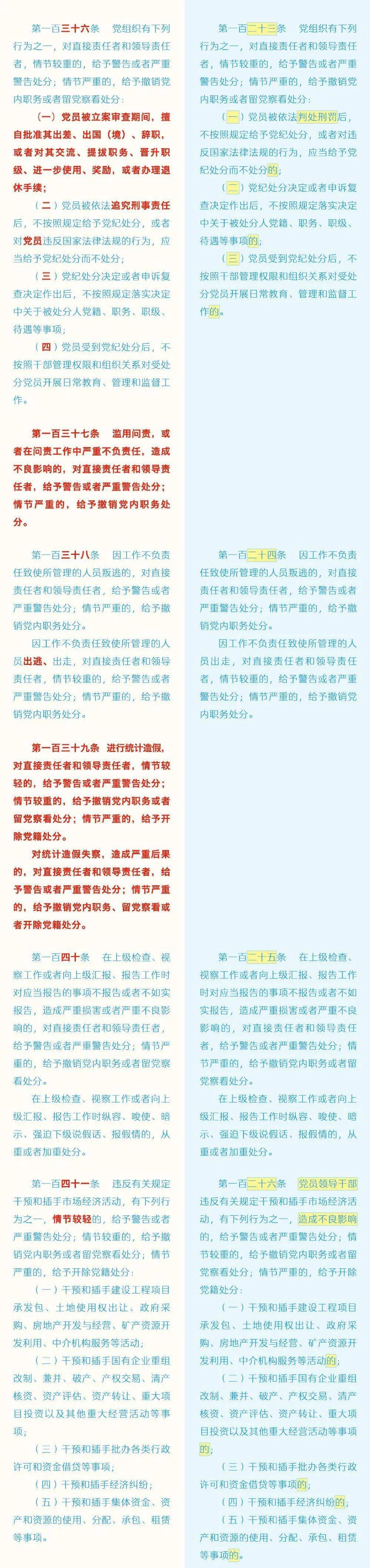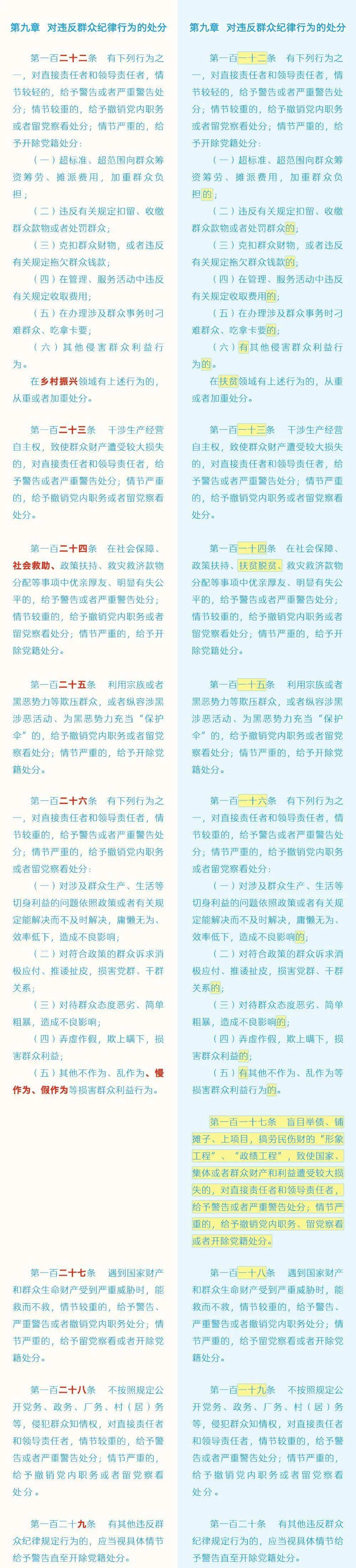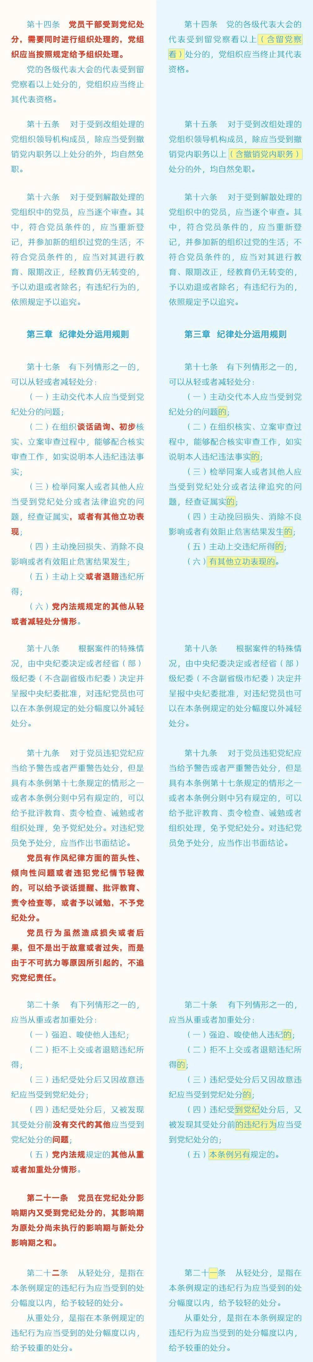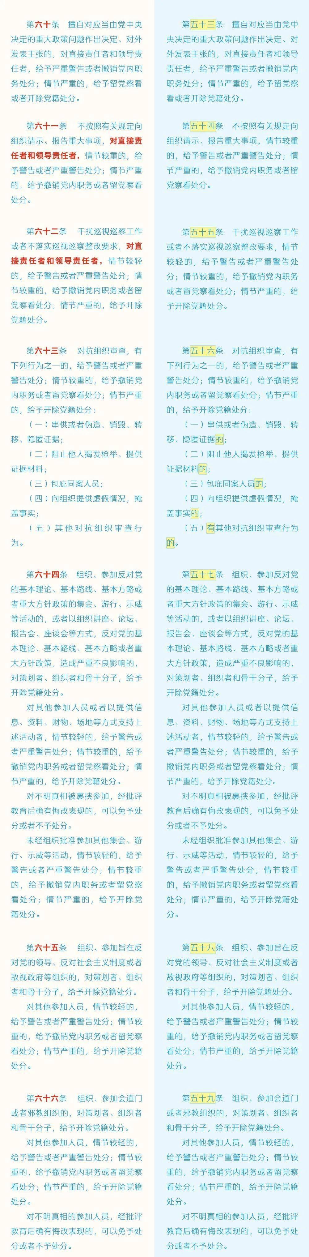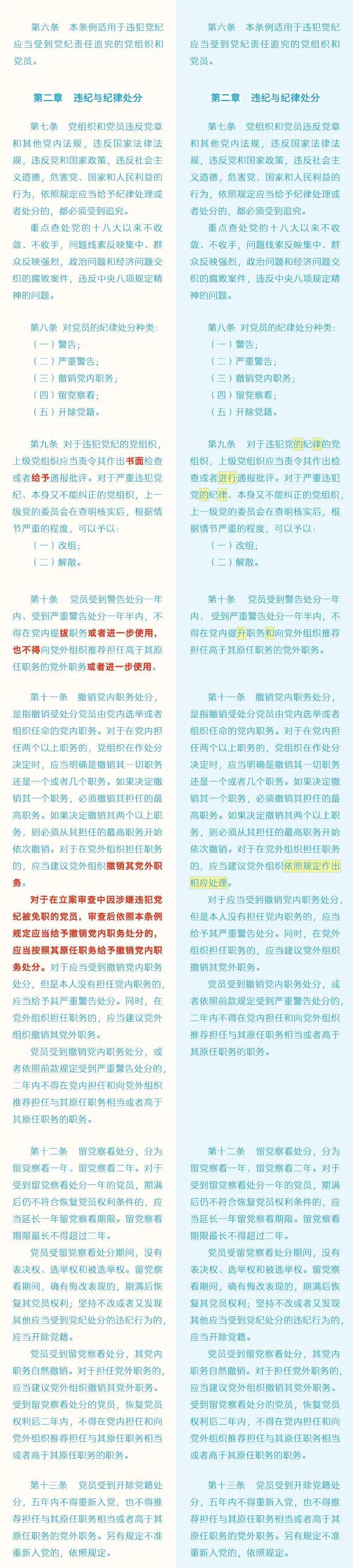 《中国共产党纪律处分条例》修订条文对照表