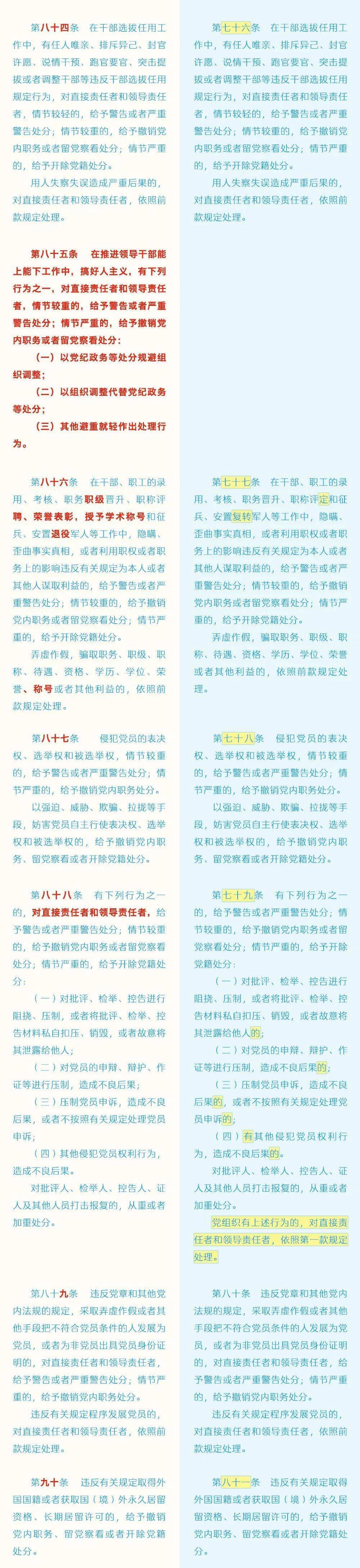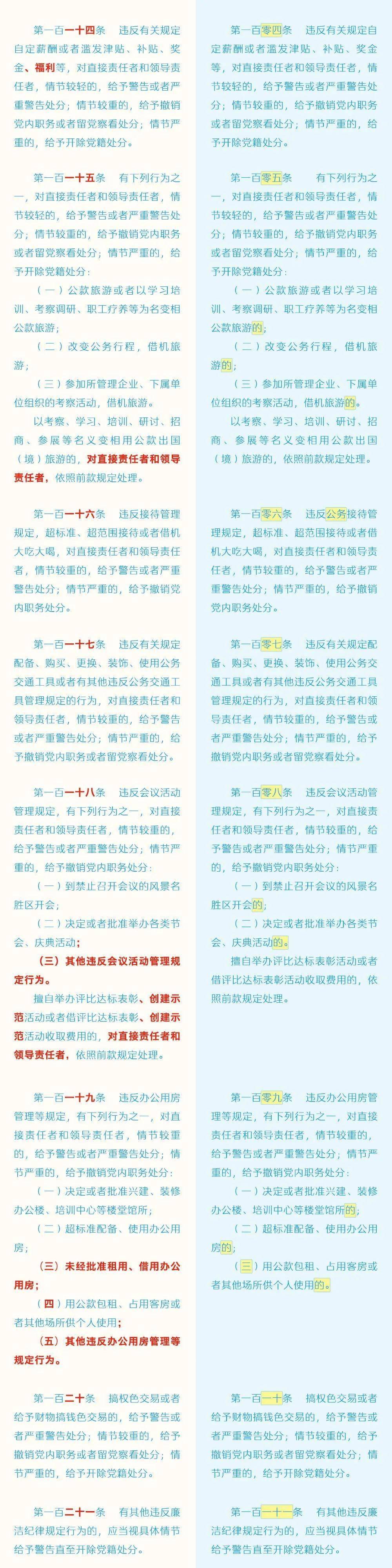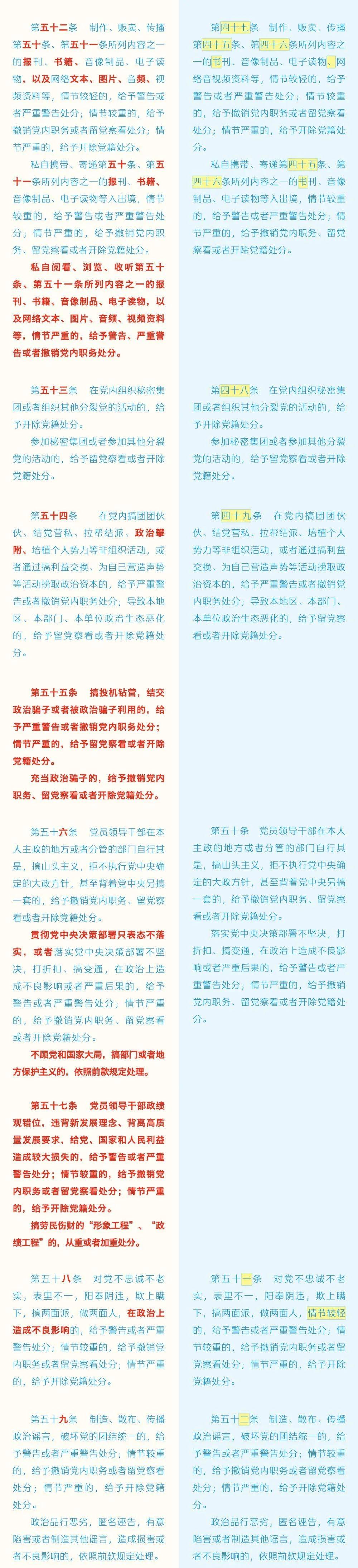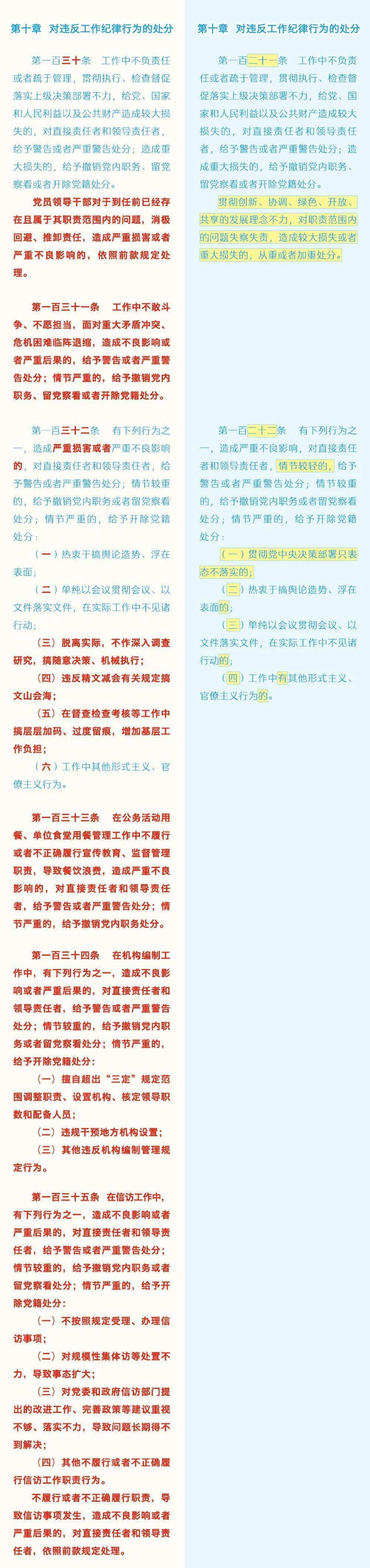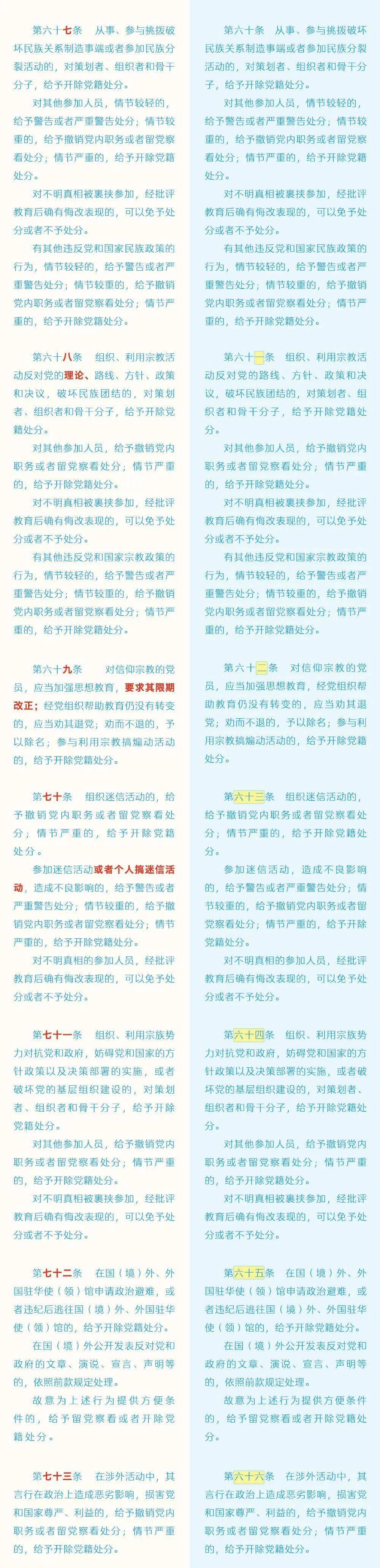 《中国共产党纪律处分条例》修订条文对照表