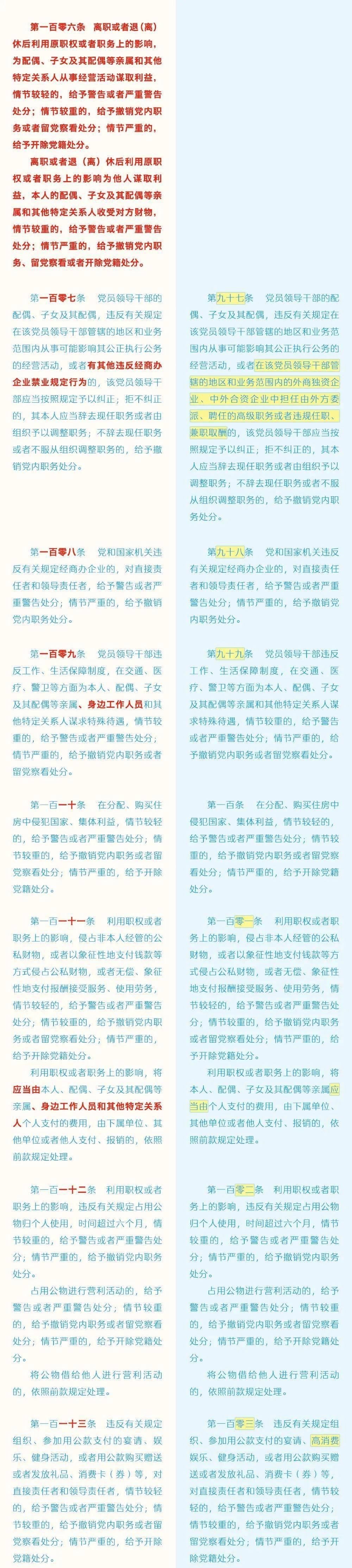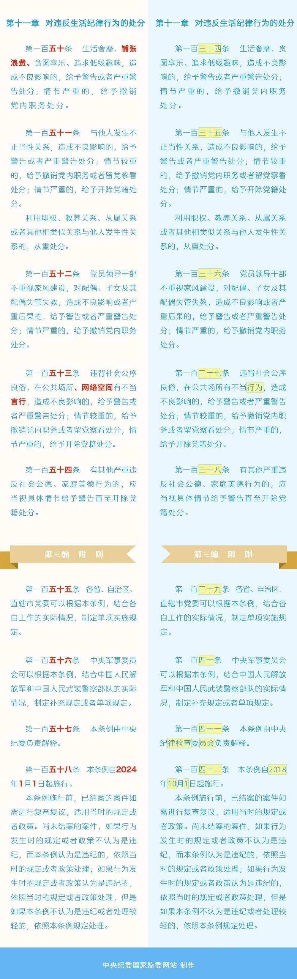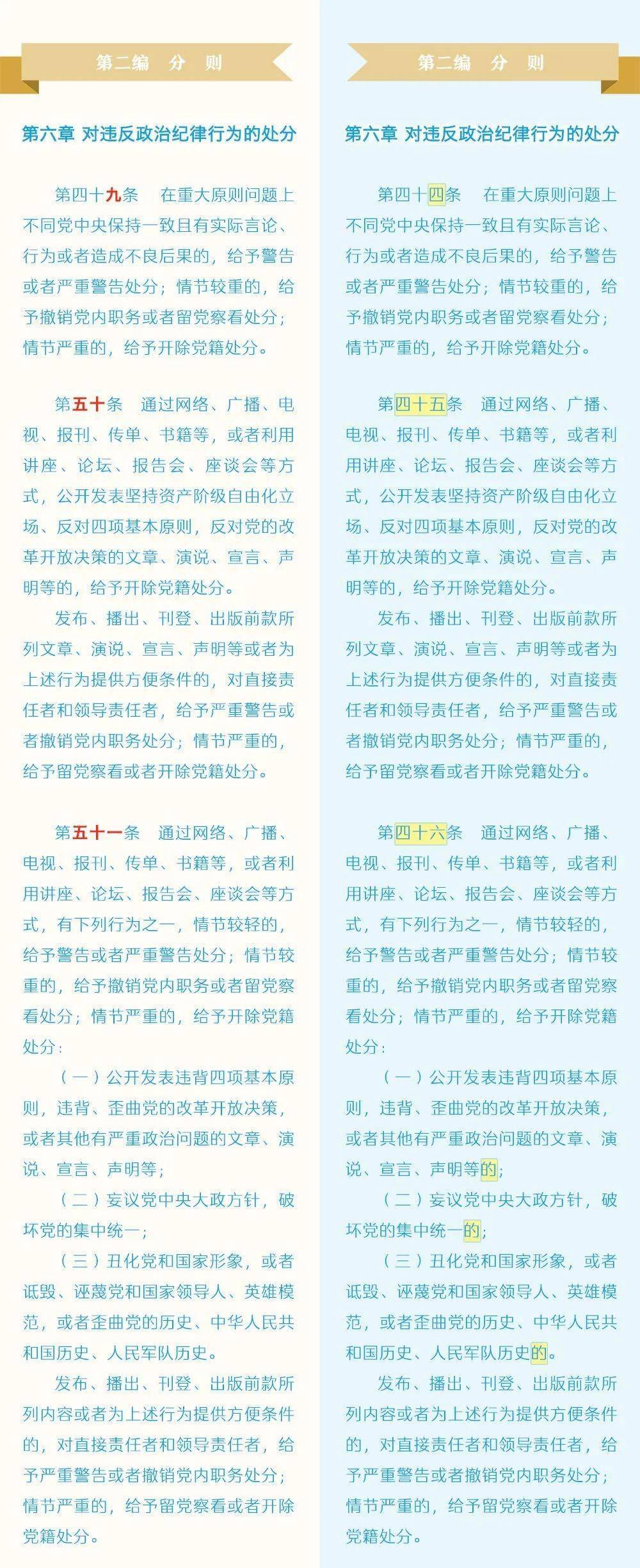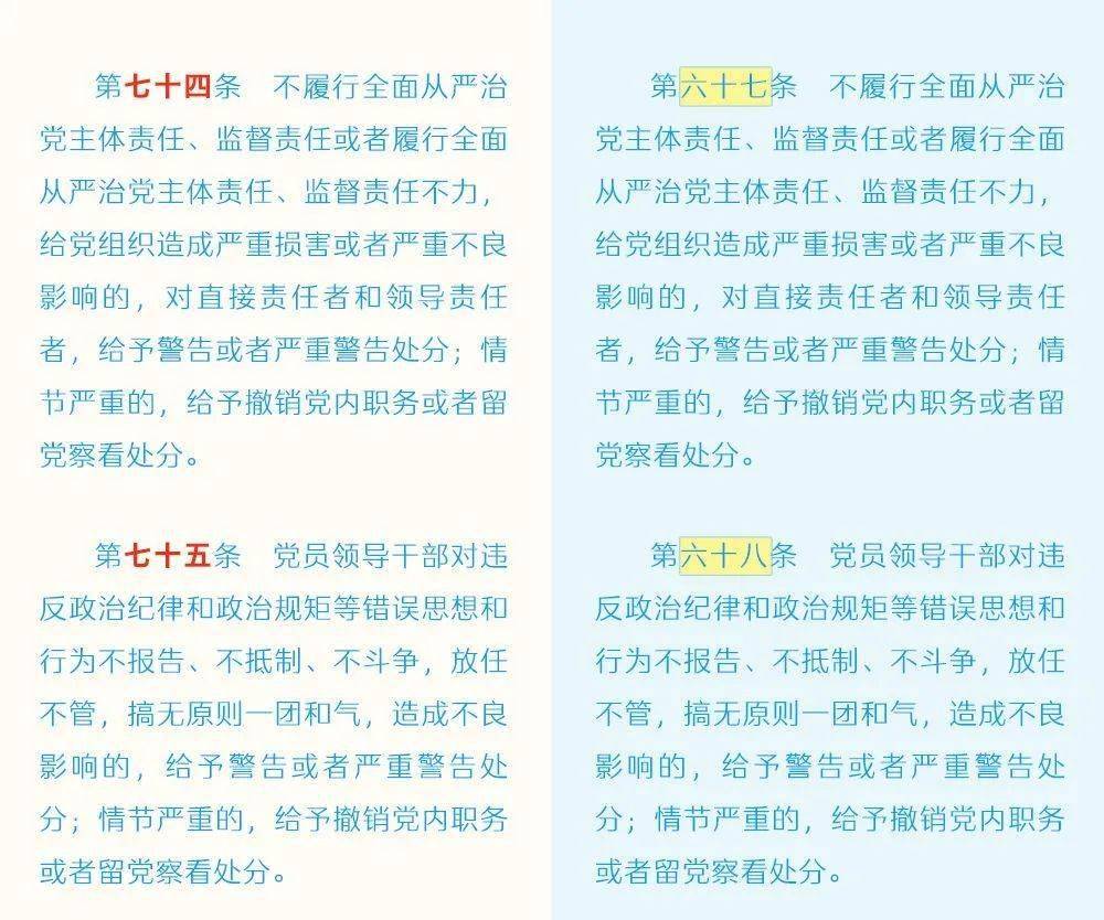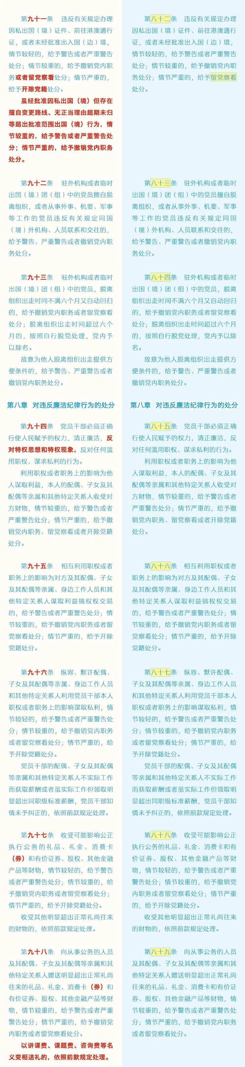 《中国共产党纪律处分条例》修订条文对照表
