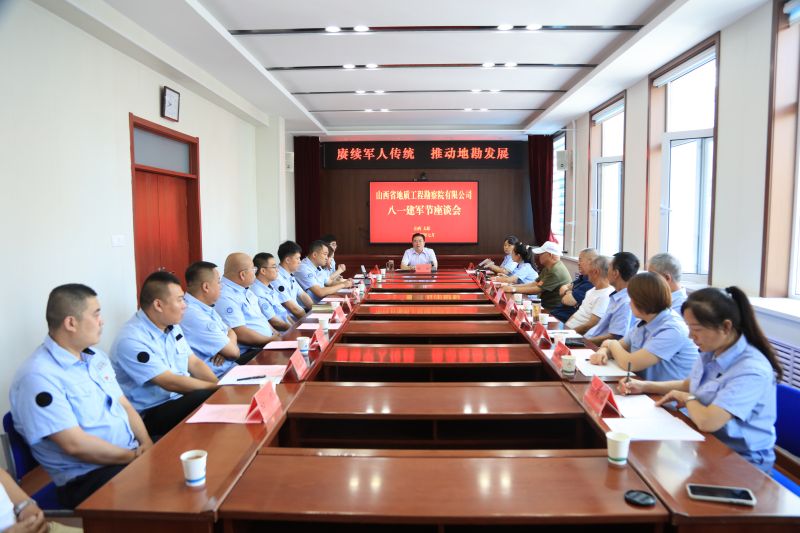 为庆祝中国人民解放军建军97周年,持续增强退役军人的获得感、幸福感和荣誉感,7月31日,地勘院有限公司召开八一建军节座谈会。公司党委书记、董事长赵政出席会议并讲话,公司党委专职副书记、副董事长、工会主席李会萍主持会议,综合管理部、党群工作部及人力资源部相关负责人、在职退役军人、离退休退役军人代表参加座谈。