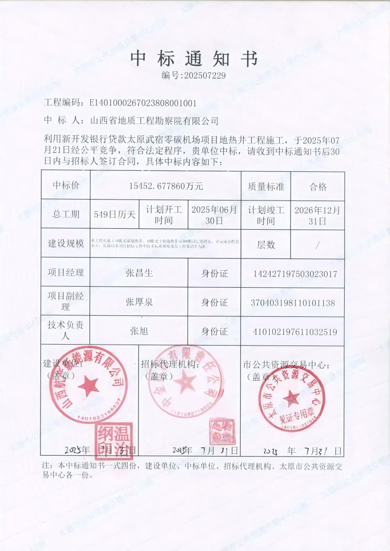 近日,必威官网成功中标利用新开发银行贷款太原武宿零碳机场项目地热井工程施工项目,中标金额15452.67786万元。